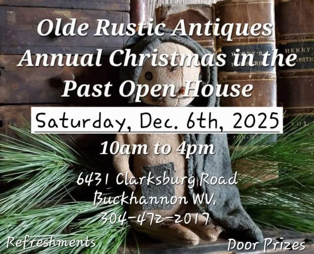 Website OldeRusticAntiques.com Location Olde Rustic Antiques 6431 Clarksburg Rd Buckhannon, WV 26201 Contact Name: Cindy Phone: 304-472-2017 Web site: OldeRusticAntiques.com So Extremely Excited for this year's Christmas Open House coming up Saturday, December 6, 2025. Mark your calendars! Get Directions using Google MapsCF922673-5A4F-4060-9520-F477564928C0