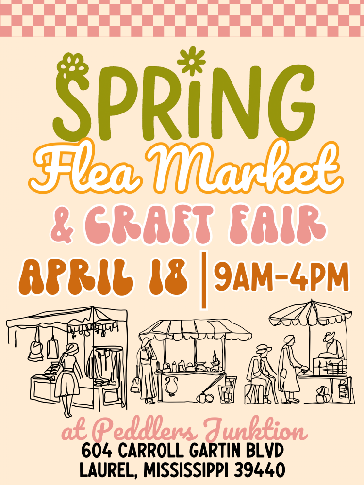 Website https://www.facebook.com/events/1418289633142279/ Location Peddlers' Junktion 604 Carroll Gartin Blvd Laurel, MS 39440 Contact Name: Elana Lawson Phone: 601-342-2278 Web site: https://www.facebook.com/PeddlersJunktion Join us for our annual Spring Flea Market + Craft Fair at Peddlers Junktion in downtown Laurel Mississippi!