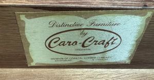 Drawer label identifies piece as "Distinctive Furniture by Caro-Craft, TRADEMARK, Division of Coastal Lumber Company, Sharpsburg, NC"