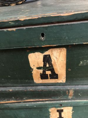 C 1900-1915 Storage Trunks with Original Paint, Letters A, I or E $145 each