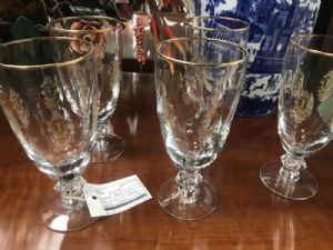 Set of 6 nine-inch stem crystal water glasses with gold rims. Tiffin Palais Versailles See separate listings for wine and cordial glasses.