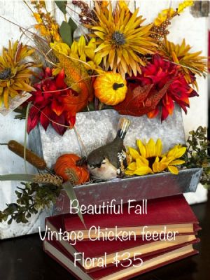 Lovely Fall floral arrangement, creatively diaplayed in a vintage galvanized chicken feeder. PICK UP ONLY at the shop.