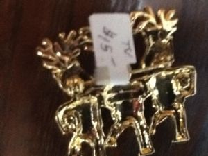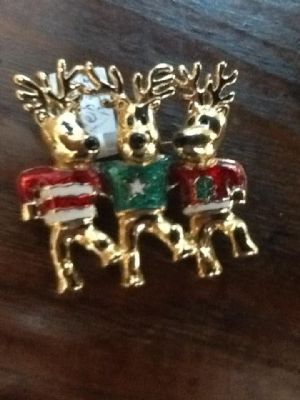 This pin has 3 reindeer dancing while wearing 3 colorful sweaters.