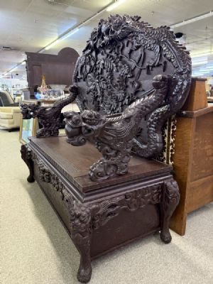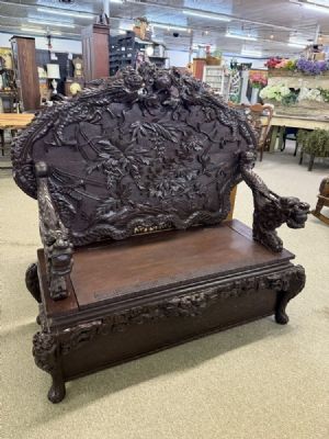 » European Carved Wood Bench