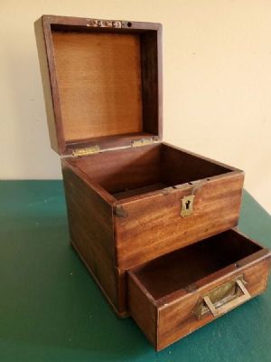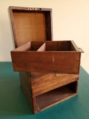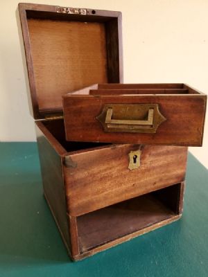 Fine 19 th century period antique mahogany "Campaign" tea box w/ drawer