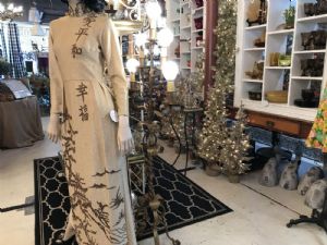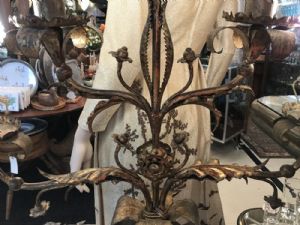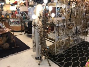 Art Deco Italian Floor Lamp. Gold tone Gilt Metal with 5 Arm Lighting. Each light can handle up to Standard or LED 100 Watt bulb. Shown with vintage beaded bulb covers, sold separately,, all new wiring and has a floor on/off switch. The Vintage beaded bulb covers fit standard bulb size and are 88.00 each, Floor Lamp 485.00.
