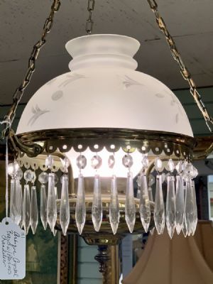 Sweet Antique Etched Brass & Chrystal Chandelier w/Prisms Hanna Dealer #31