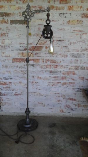 Handcrafted nice floor lamp made from misc parts..59" tall and 14" wide