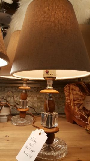 Vintage 1930s pair of small lamps, wood and glass, new shades