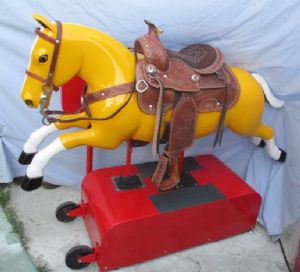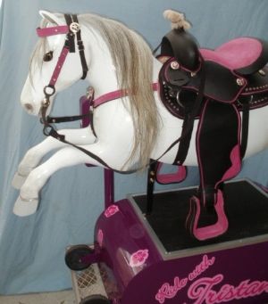 he has a 10 cent or 25cent coin Box. New studded Black leather saddle, bridle , and breast collar.