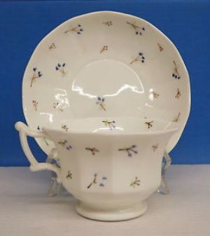 19th C. Sprigged Enamelled Soft Paste Pocelain Cup & Saucer c1840