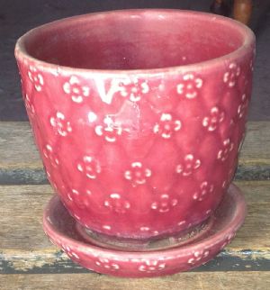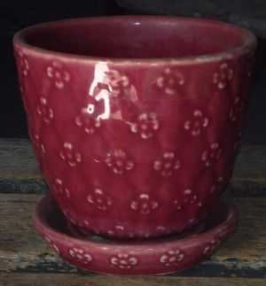 Store Home » Pottery/Art Pottery/Stoneware » Shawnee Pottery Quilted Daisy Maroon Flower Pot Fast Saucer Vintage Decorative Planter