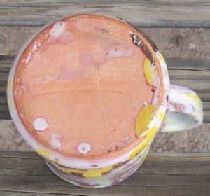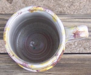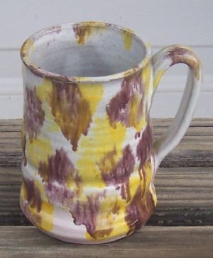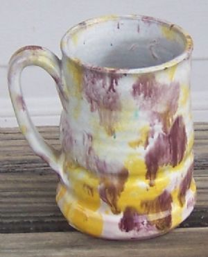 Store Home » Pottery/Art Pottery/Stoneware » Vintage Art Pottery Mug Grey with Purple and Yellow Drip Glaze