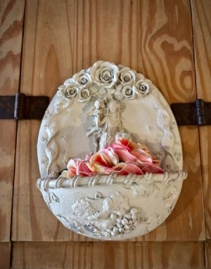 Angel Plaster Wall Pocket W/Silk Flowers