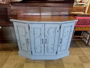 Sky Blue cabinet with Dark Jacovian stain on top and inside shelves