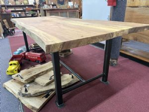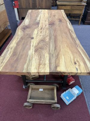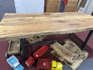 Metal Base, Live Edge, Epoxy fillied Slap Table!