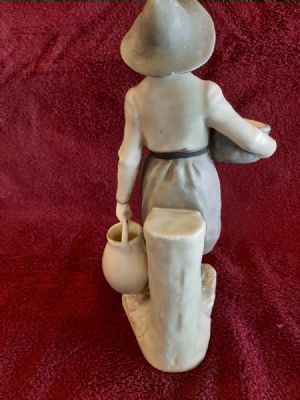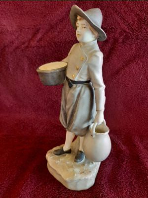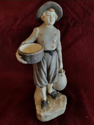 This is a beautiful late 1800’s or early 1900’s porcelain sculpture of a young farm-hand carrying chore related equipment. This is a large sculpture with an overall height of 11”. The colors and details are spectacular. This sculpture is attributed to Royal dux of Czechoslovakia. Just a charming hand painted work of art. For payment we will accept personal checks, money orders, certified check or, cashiers’ check. Personal checks require 8 business days to clear the bank, all other forms of payment receive same day as received shipment. Thanks for looking and if you have any questions give us a call @ 931-303-6739 or email us at windowshop49@yahoo.com