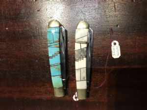 NAVAJO POCKET KNIFE PURCHASED IN TUCSON, ARIZONA FROM NATIVE AMERICAN CRAFTSMAN. ONE TURQUOISE AND ONE WHTE CRYSTAL STONE