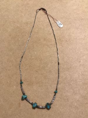TURQUOISE, BEAD AND SILVER NECKLACE